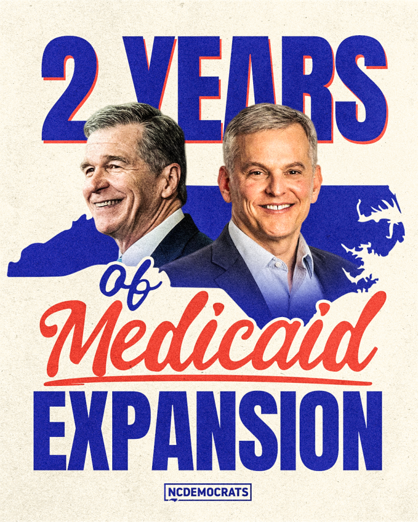 Thanks to Gov. @RoyCooperNC, Gov. @JoshStein_ and Democratic leadership, Medicaid was expanded to nearly 700,000 North Carolinians two years ago.