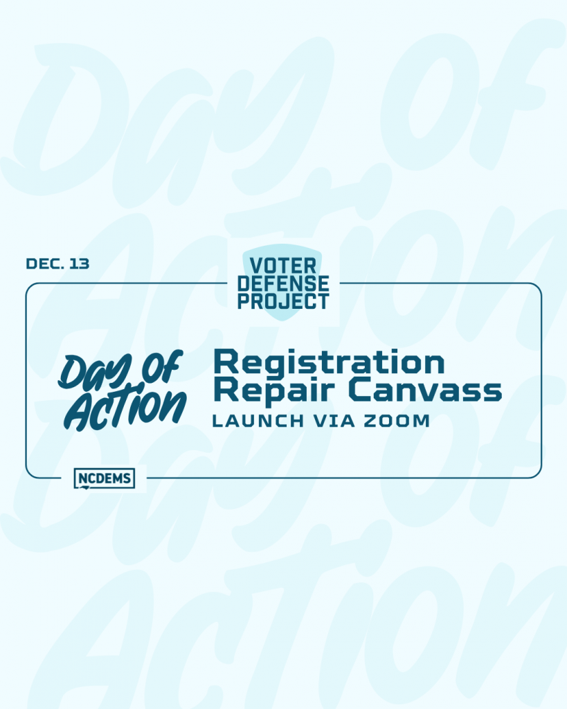 This canvass is our chance to protect democracy at the door. Thousands of North Carolinians are on the NC Board of Elections “Registration Repair” list simply because their voter registration is missing an ID number. If we don’t help them fix it now, they will be required to cast a provisional ballot next time they vote. This is a virtual canvass launch. At the start of your shift, you will join a Zoom for information and your list number.