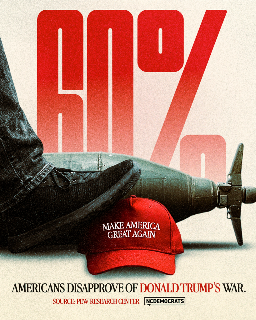 It’s been exactly one month since Donald and JD bypassed common sense and dragged us into an unnecessary war with Iran. We knew their brand of chaos was dangerous, but right now, North Carolina families are paying a devastating price.