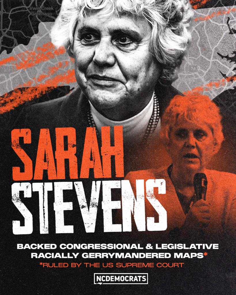 When you’re elected to serve North Carolina, your job is to make sure your neighbors have a voice. But while in the legislature, Sarah Stevens threw her full support behind congressional and legislative maps that were so blatantly rigged, the U.S. Supreme Court had to step in and strike them down. The official ruling? Unconstitutionally racially gerrymandered.